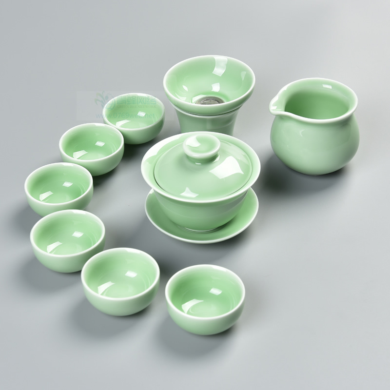 龙泉青瓷茶具茶盘套装茶杯小陶瓷茶壶西施壶盖碗整套功夫茶具家用